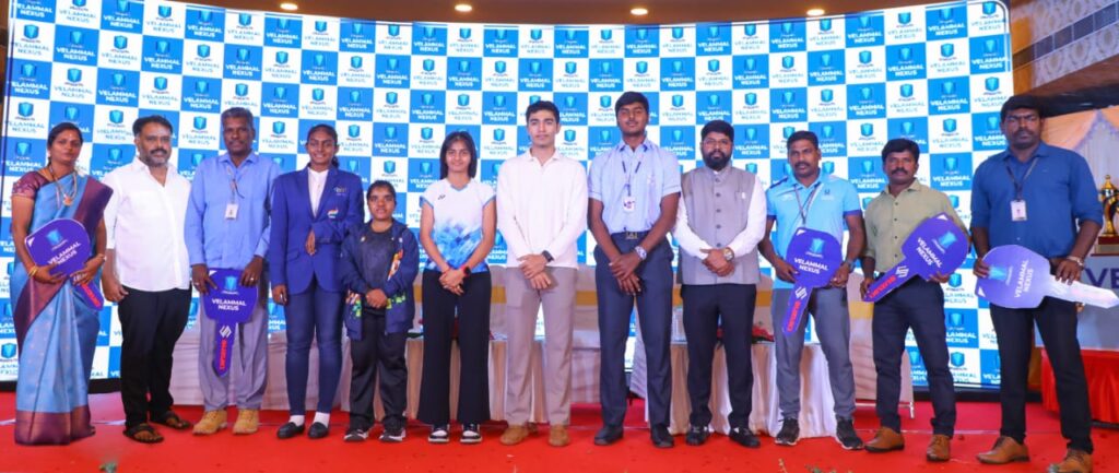 வெலம்மாள் நெக்சஸ், இந்தியா மற்றும் தமிழ்நாட்டிற்கு பெருமை சேர்த்த 416 வெலம்மாள் நெக்சஸ் மற்ற விளையாட்டு வீரர்களை பாராட்டும் நிகழ்ச்சியை இன்று வெலம்மல் ஹாலில் மிகச் சிறப்பாக நடத்தியது. இந்நிகழ்ச்சி, விளையாட்டுத் துறையில் மாணவர்களின் பங்களிப்பை கொண்டாடும் விதமாகவும், வெலம்மாளின் விளையாட்டு முன்னேற்றக் கொள்கைகளை வலியுறுத்தும் விதமாகவும் நடைபெற்றது.
