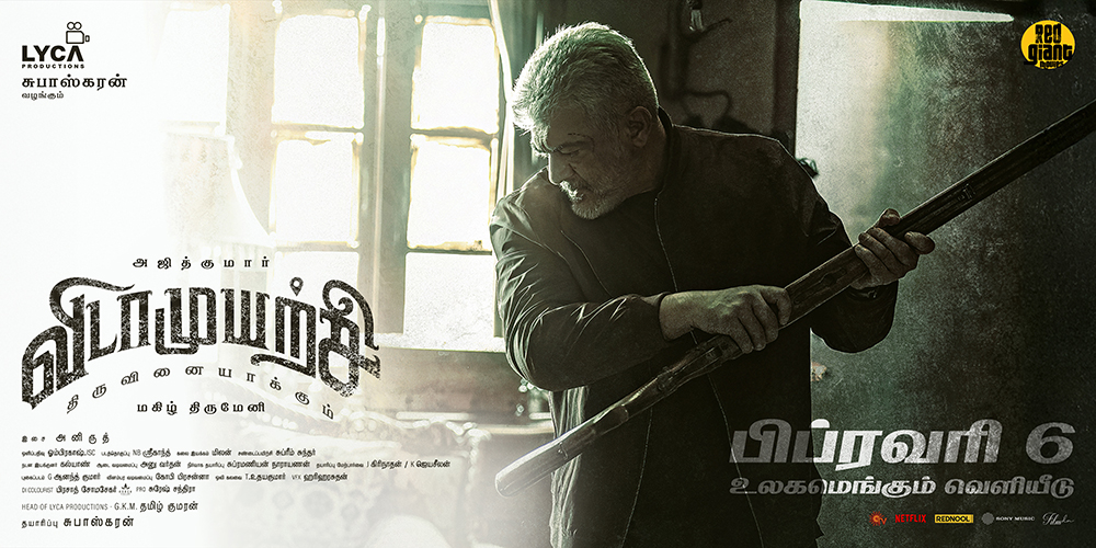 லைக்கா தயாரிப்பில் அஜித் குமார் திரிஷா அர்ஜுன் ரெஜினா கசன்றா ஆரவ் மற்றும் பலர் நடிப்பில் அனிருத் இசையில் மகிழ் திருமேனி இயக்கத்தில் வெளிவந்திருக்கும் படம் விடாமுயற்சி